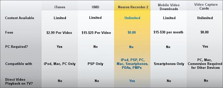 How does the Neuros MPEG4 recorder compare to movie download services, capture cards and other formats?