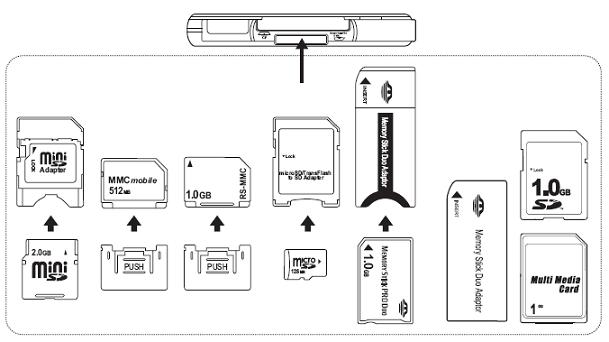 • SanDisk MS Pro Duo (tested up to 1GB)