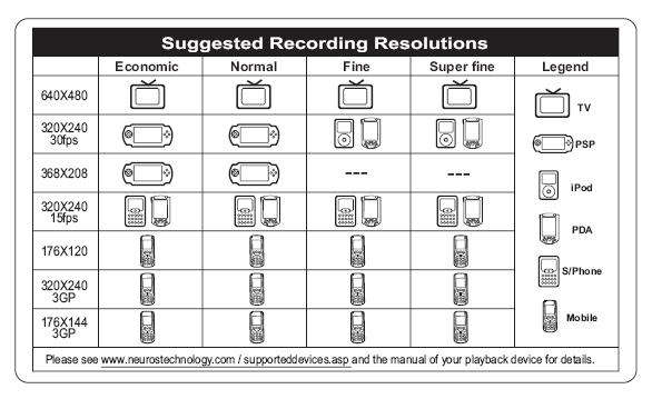 • ISO Standard MPEG4 SP encoding with AAC-LC audio.